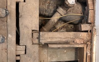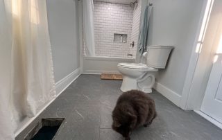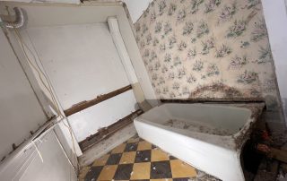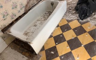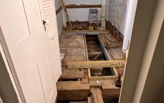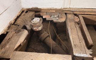 Removing the floor of this bathroom was more like an archeological dig than a home renovation. With each layer we went back into time in intervals of half-centuries. Just above the soil surface eroded cast iron pipes barely clung to the hand-hewn timbers (perhaps salvaged from an even older home or barn).