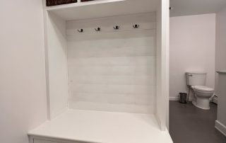 No one says you have to accept the layout of a house once you buy it. After living in a space for a while, you might start thinking of how much better you could make it. Simple ideas like, “If I move this wall and take away that one, I will have a better flow and more storage space.” Putting in a pocket door saved some wall space in this case. Having a cubby bench in the mud room made it easy to organize the kids essential gear.