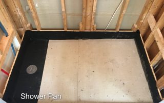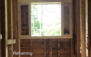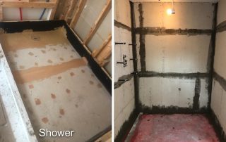 The existing smaller window was removed and framing for a new larger casement window was constructed. The uneven floor was leveled. The shower structure was created and the shower bed poured. All surfaces were prepared for wallboard and tile. Joe Discatio, of Customized Plumbing & Heating, in Westbrook plumbed the shower, heating, and toilet.
