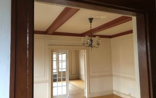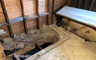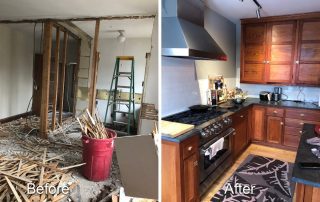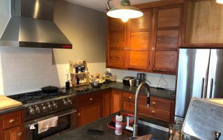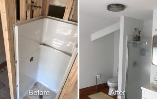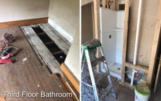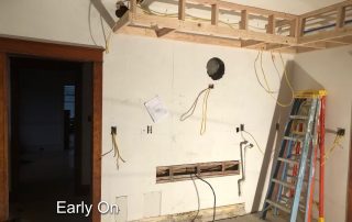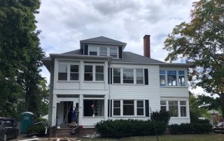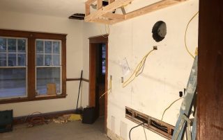 By far the most interesting project in a long while that never failed to surprise us with its diversity of project types under one roof. The project got underway in March just before the COVID pandemic began. Luckily carpenters were considered essential workers especially relating to providing safe housing. I recall driving to work down I-295 from Bowdoinham with only a few cars and trucks on the road. Working basically in quarantine, we suited-up with N-95 masks (which we had been using for decades already) from our last box, knowing we had better treat the mask preciously since they were in demand and hard to replace. Months went by as we gutted rooms, re-constructed framing, demolished old tile bathrooms, drywalled, trimmed, floored, sided, painted, and more. Subs came and went, new areas explored, opening up new challenges like cans of worms. Then the break-in occurred and wires were cut and taken, glass doorway entries broken, and several of our tools stolen. The project went on despite the setbacks. Nearly a year later the results were well worth the efforts. The home became a gleaming example of synthesizing the old architectural styles with the new ones.